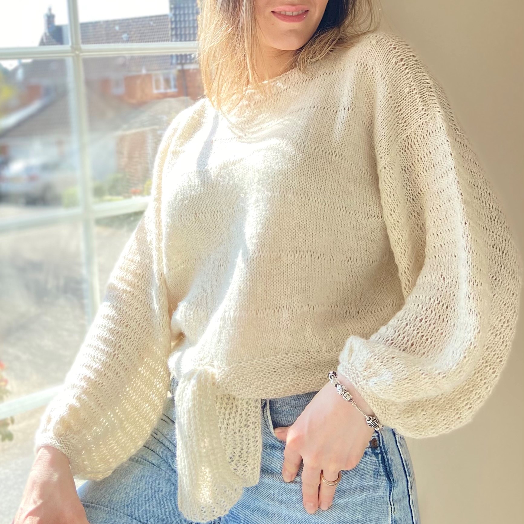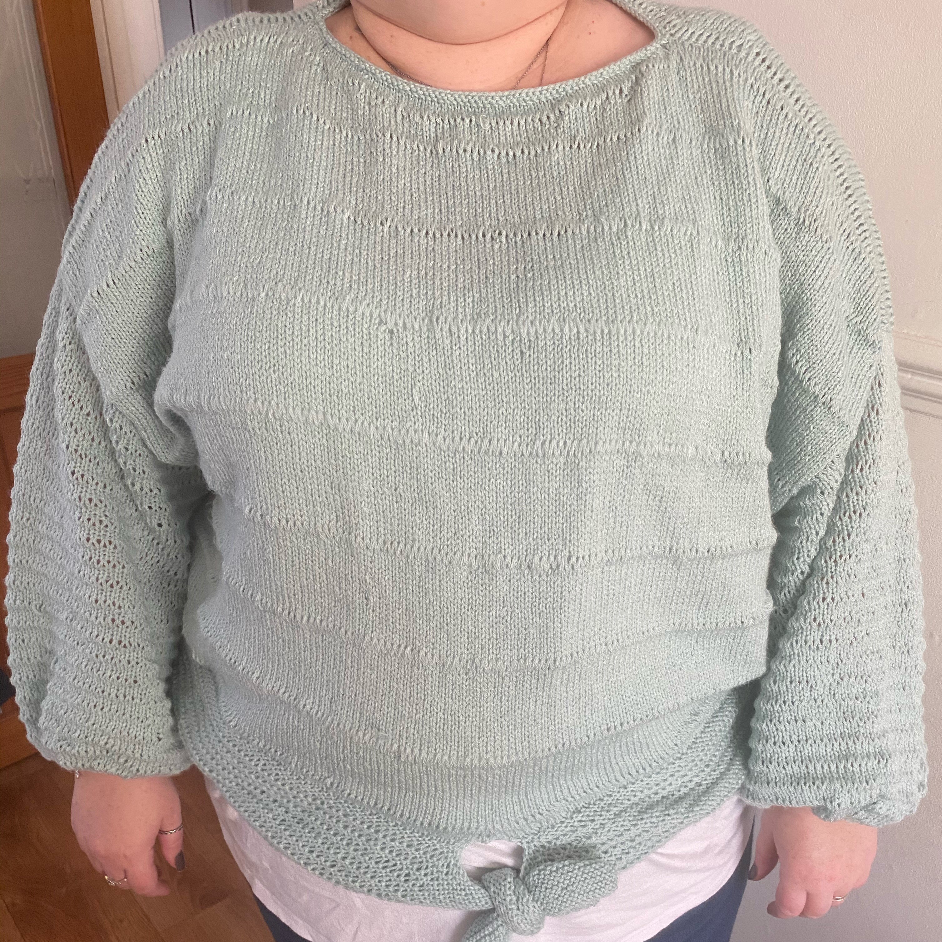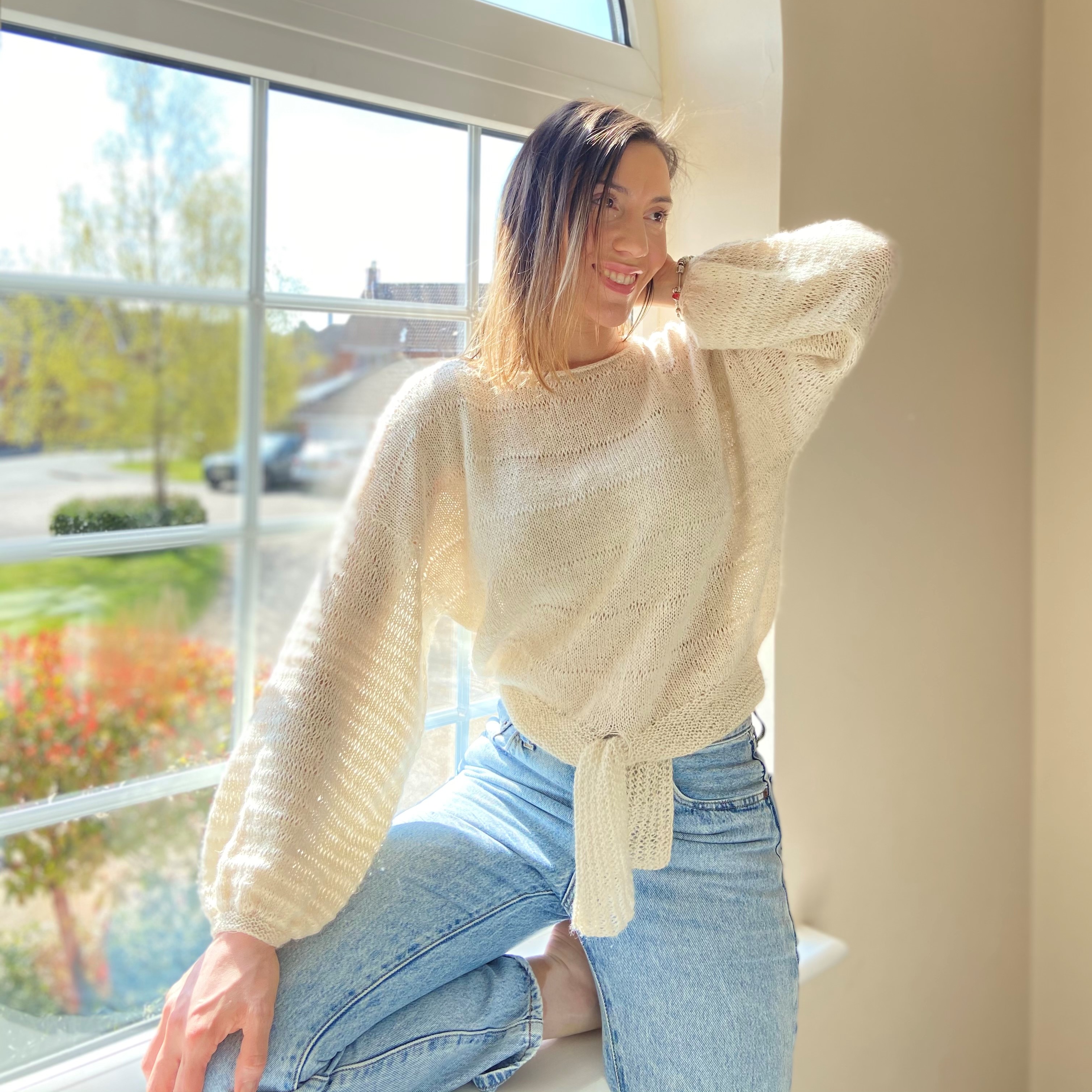 Sometimes, what you need for Spring isn’t a strappy camisole, or a t-shirt, or a sundress… but just a lightweight sweater. A sweater that adds a little warmth, but doesn’t bring on that ‘for goodness sake it’s April and I’m STILL wearing woolly jumpers‘ feeling. Us Brits know that feeling all too well. Summer sweaters are a wardrobe staple in my book, so I thought it was about time I designed a 2021 version. Meet the Erinome sweater, the breeziest, lightest Spring knit you ever did see. I’ve already worn it for a wander along the beach in Wales (a getaway! hours from home! what a thrill) and for several days chilling in the garden. I’m fairly confident my Erinome sweater will be in constant rotation until September, and then again from every April to September in years to come.