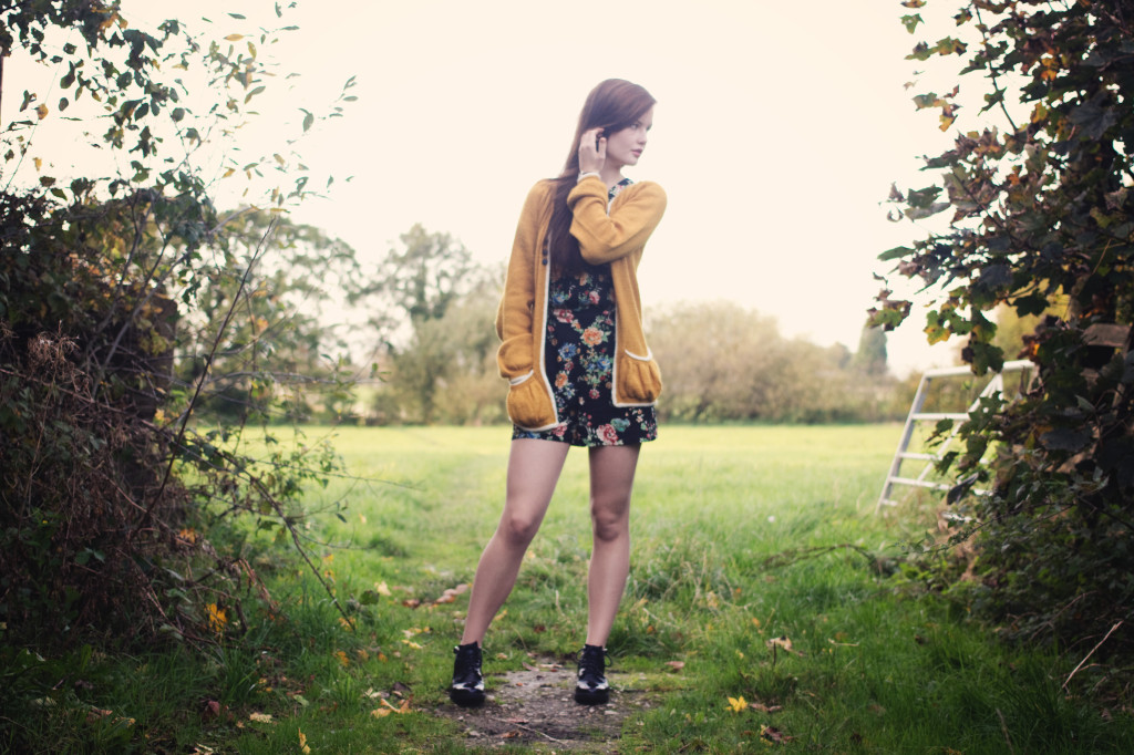 Pairing my fave cardi with my new fave playsuit seemed the obvious thing to do, cute combination don’t ya think? The ‘oriental floral’ design happened to go nicely with the golden yellow of my cardigan so t’was definitely meant to be. I actually tried this Warehouse playsuit on a while back but ended up buying a tea dress instead, so of course it was a nice surprise when my mum spotted the size 8 on sale at Outfit and picked it up! Playsuits are literally the most comfortable clothes ever; like a onesie but without the annoying legs and with extra flattering waist shaping :) They’re versatile too – I wore this one for an 18th birthday last weekend without the cardigan and with over the knee boots, but drizzly grey british weather got between that one and the blog. Maybe another time it’ll escape the rain!