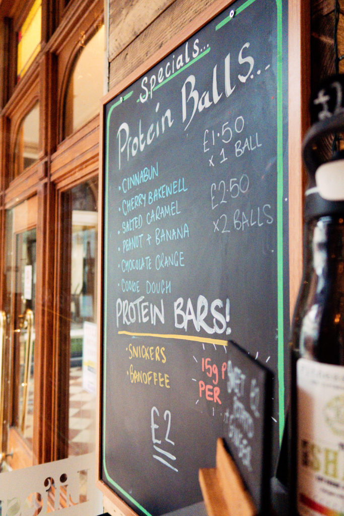 I didn’t manage to get many photos because I popped in on a weekday lunchtime when everyone and their mother (or y’know, friend or something) also popped in for lunch, so you’ll have to take my word. I had the small lunch box and protein ball meal deal and damn the salted caramel protein balls were good.